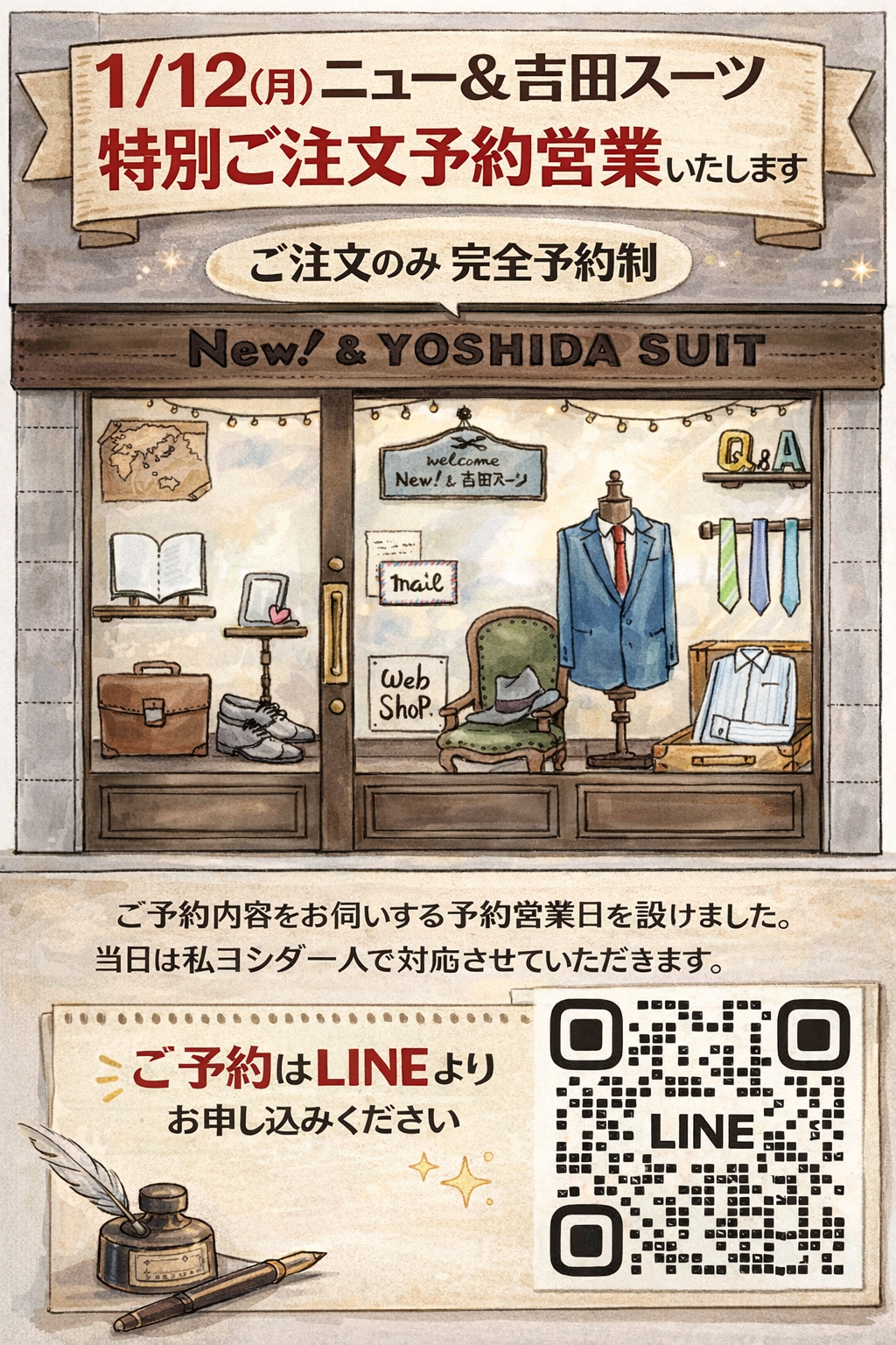 今年もよろしくお願いします。1月12日はニュー&吉田スーツ虎ノ門店のみ、ご注文専用特···